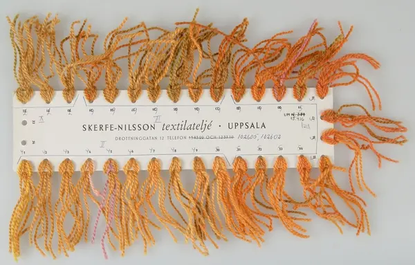 Gåva den 7 juli 1971 från textilkonstnärinnan Ingrid Skerfe, Uppsala.
