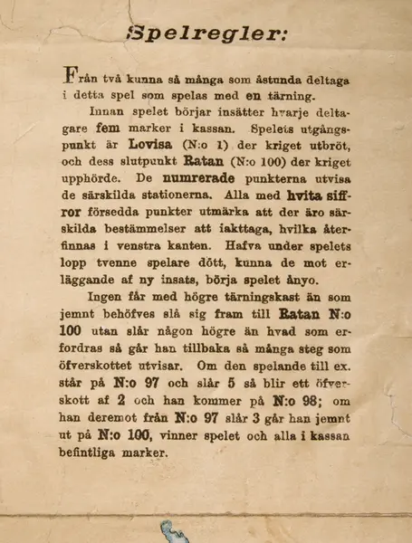 Spelet har tillhört systrarna Wästfeldt, Ester (f. 1885), Anna (f. 1887), Ebba (f. 1889) och Amy (f. 1891) som barn i Uppsala. Fadern Wästfeldt (1838-1906) var baningenjör vid SJ och kom till Uppsala vid sekelskiftet. Se Elgenstiernas ättartavlor. Givarinnan har fått leksakerna i arv efter sina halvfastrar (farfaderns andra gifte).