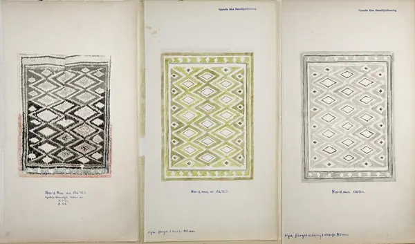Fotografiet och skisserna tillhör den så kallade hemslöjdssamlingens A-samling, som samlades in av Uppsala läns hemslöjdsförening under åren 1916-1978.