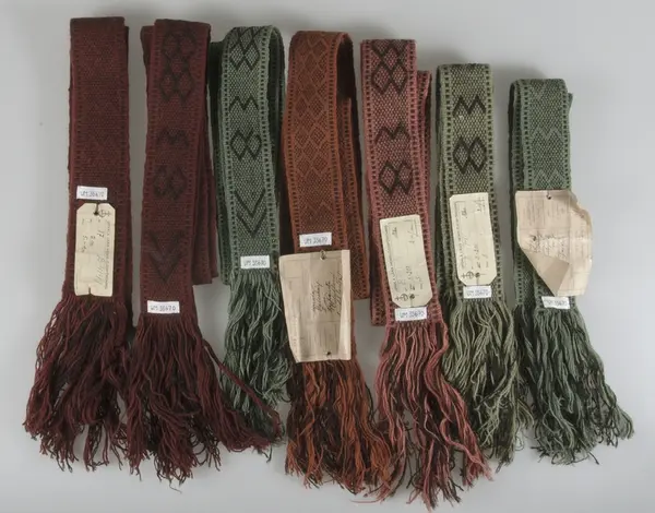 Minst två av pälsbanden är vävda till Stockholmsutställningen 1930. Banden är kopior efter gamla pälsband.