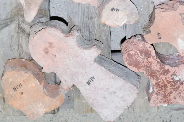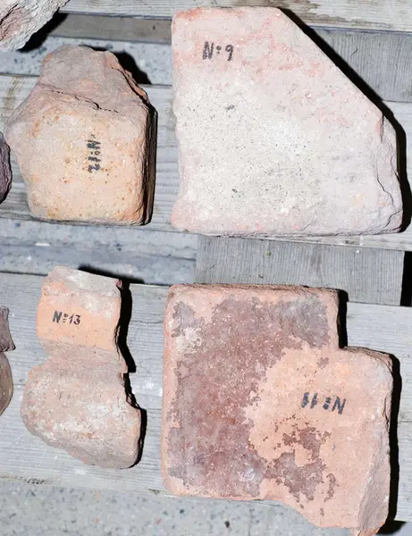 Har förvarats i trälåda märkt med pappersetikett: KV. TORGET Formtegel. Ö. Åg. 19. placering Klostergården.