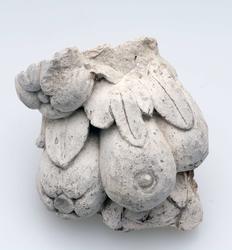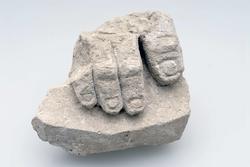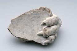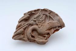- Ett oglaserat kakelfragment föreställande en hönsfågel av något slag, sannolikt en fasan.