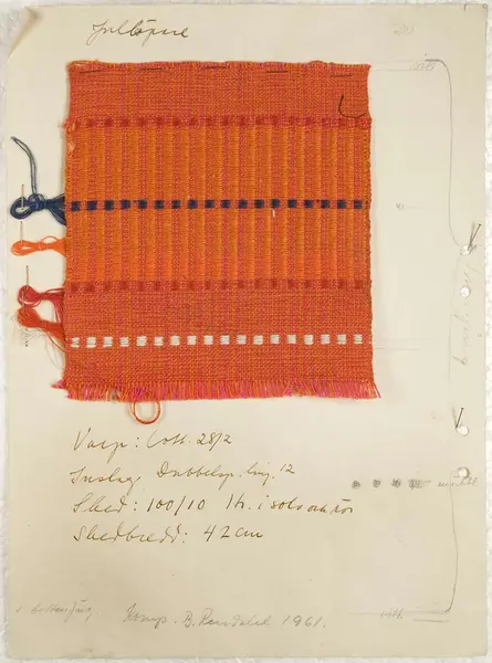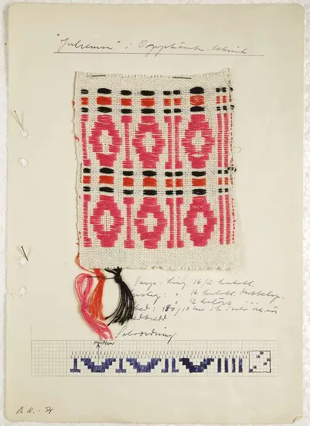 Vävprov av julremsor och löpare formgivna av Britta Rendahl år 1954-1961.
