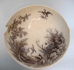 I have a similar bowl in pristine condition from the Sylva U&C Company. There is also a stamp that reads ‘5w’. I believe this is the time period it was made (1840-1860). I am interested in selling this rare piece of history. Please message me back with any information you may have to sell this bowl. Thank you.