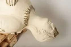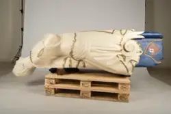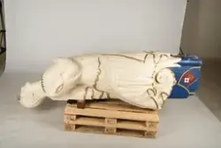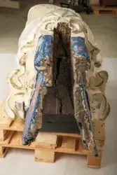 Ved dyrlege S. Stiggard, Lenvig, Jylland, Danmark. Siden Bragdøs forlis har gallionsfiguren stått i hagen hos Pinholt, strandet Houe pr. Lenvig på Jylland