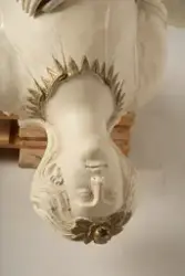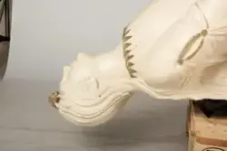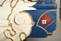 Har tilhørt fullriggeren Bragdø. Siden Bragdøs forlis har gallionsfiguren stått i hagen hos Pinholt, strandet Houe pr. Lenvig på Jylland- SkipBragdø (seilskip) (1891 - 1921)sikker
