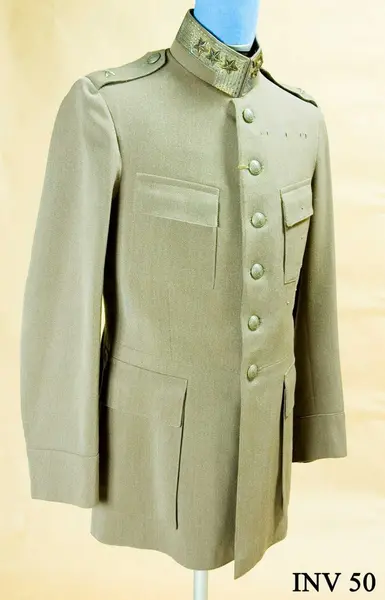 - Ur uniform m/1923 för general. Består av vapenrock, långbyxor, ridbyxor, mössa, livrem och kappa. Har tillhört Gustav VI Adolf (1882-1973).