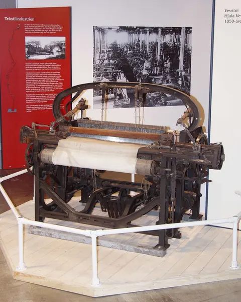 I drift ved Hjula Veveri i ca. 70 år. (antagelig fra 1850- årene til 1920- årene) På stolen er vevet ca. 600 000 meter tøy. (Opplyst av fabrikkeier Chr. Schou (Halvor Schou?) i skriv av 26.01.1927).