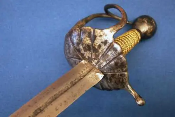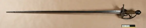 Kan vara en av amiralitetsvärjorna från 1683 eller en av de hålslipade komissvärjorna tillverkade år 1685-88.