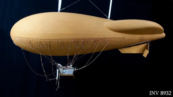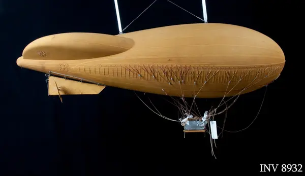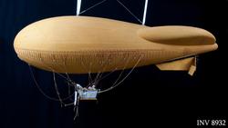 Experterna anser att det kan vara en ballongmodell tillverkad i tyska Augsburg föreställande den schweiziska ballongen av M-typ. Även andra ballonger som användes av A6 i Småland under 1930-talet tillverkades där. Det finns en mycket snarlig ballongmodell på det schweiziska Verkershaus i Luzern men den är något mindre och saknar vissa delar. Den sistnämnda är även den tillverkad vid Ballonfabrik Augsburg grundat av August Riedinger. Vår modell påminner i vissa delar om fältballong m/32 men den nämnda har inte den styrbara fenan som hänger under denna modell i aktern.