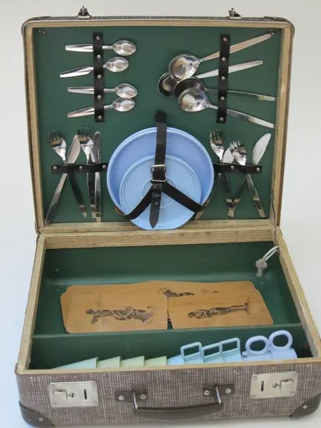 - Giver husker at familien hadde dagsturer "Hadeland rundt" - og da var alltid denne kofferten (og koffert OMu.g00768) med. De kunne bruke hele dagen, men de teltet ikke.