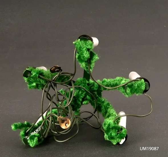 Det lite tunga batteriet, som hängde bak på rumpan, var ett irritationsmoment mindes hon. Troligen var det hennes mamma som fixade kronans gröna dekor.