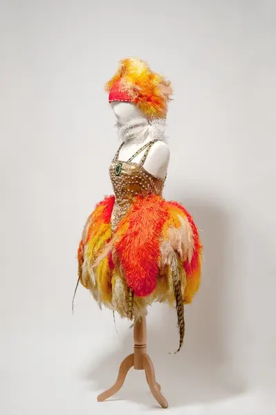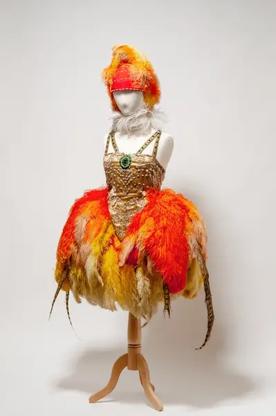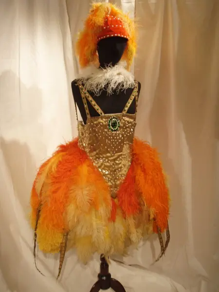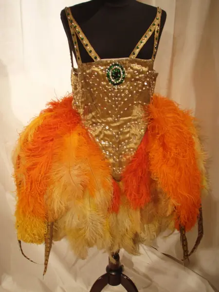 - Denne kostymen ble brukt av danseren og pedagogen Love Krohn (1892–1951). Krohn fikk sin første ballettutdanning i St. Petersburg, hun trente hos Fokine i Stockholm i 1912 og hadde studert spansk ballett i Barcelona. Hun åpnet sin egen skole i 1917 og drev den til 1950. I 1918 ga hun soloforestillinger på Nationaltheatret. "Publikum beundret både hennes suverene teknikk og de eventyrlige kostymene hun hadde samlet i utlandet" (Valdenar Hansteen, "Historien om norsk ballet", s. 61)