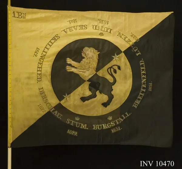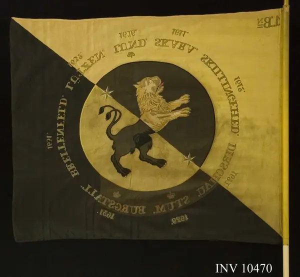 - Två bataljonsfanor broderades 1853 av Hedvig Bolin, denna för 1:a bataljonen. De överlämnades till regementet av kronprins Carl 1854.