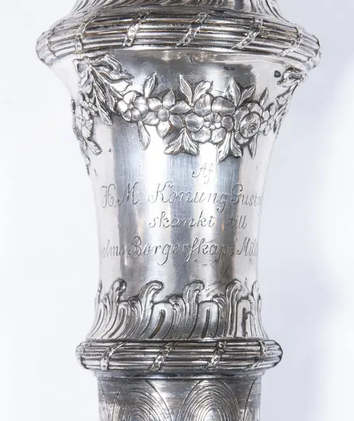 - Skänkt år 1791 av Gustav III till Stockholms borgerskaps infanterikår.