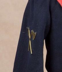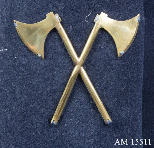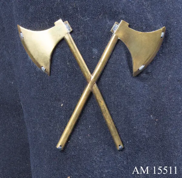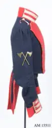 - Tidigare utställd som uniform för timmerman 1830-50, sammansatt av persedlar från olika regementen. Bestod av frack, epåletter, långbyxor, förskinn, mössa, handskar, skor, damasker, halsduk, axelgehäng och patronväska.