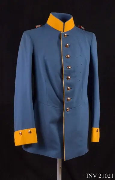 Ur uniform för överste vid Dragonreg:t König Friedrich III (2 schlesiska), nr 8 VI Armékåren, Tyskland. Består av syrtut, vapenrock med epåletter, ridbyxor, långbyxor, överrock, kask, mössa, skärp, kartusch med rem, axelklaffar, sabelkoppel, stövlar samt sabel med balja och portepé.