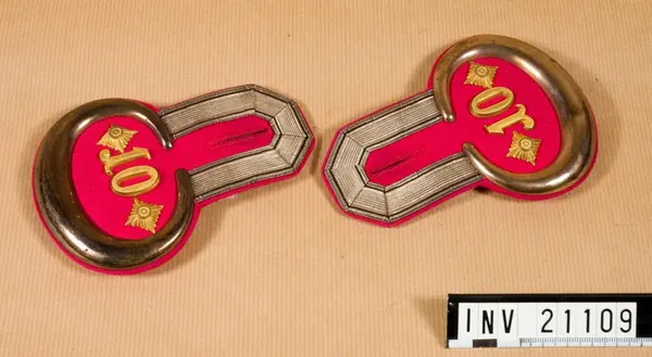 Ur uniform för officer vid 10 Ulanregementet, Hannover. Består av vapenrock med epåletter, långbyxor, ulanmössa med pompong och tagelplym, ägiljett, skärp, kartuschlåda med rem och stövlar med sporrar. Burien av von Obernitz.