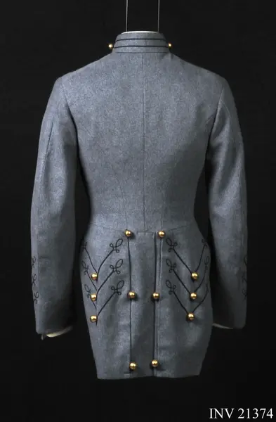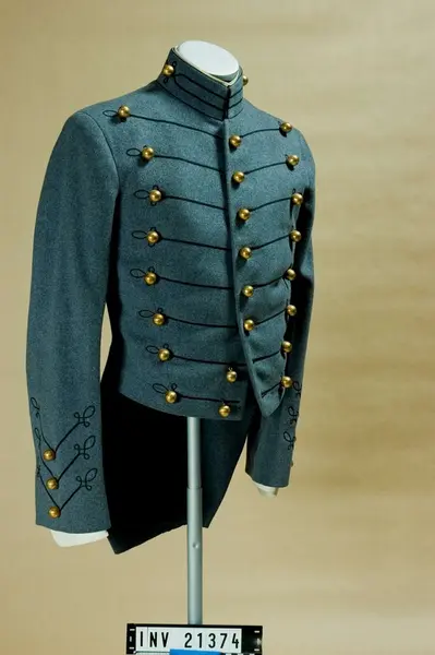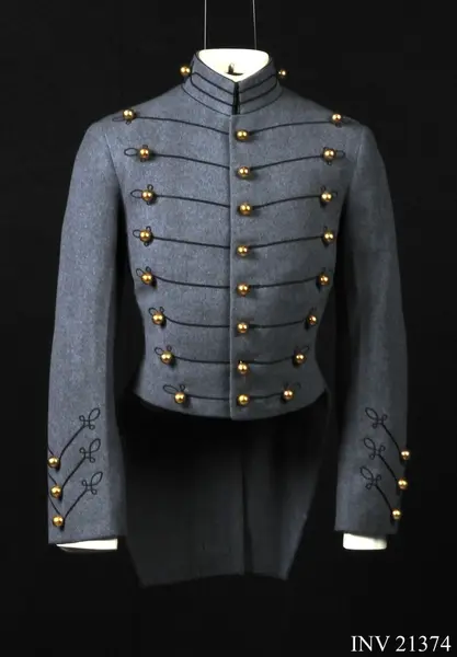 Ur uniform för kadett i West Point, USA. Består av frack, långbyxor, kappa, skärmmössa, tschakå med ståndare, tygfodral, vantar, livrem, fältmössa.
