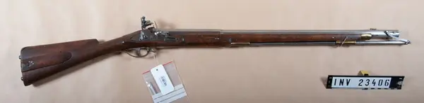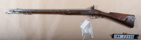 - Utst.etikett "Studsare m/1804 för Lätta Livdragonernas hästjägare. Helvigs konstruktion. Kaliber 20 mm. Vikt 4,21 kg. Pipans längd 74,3 cm".