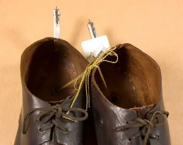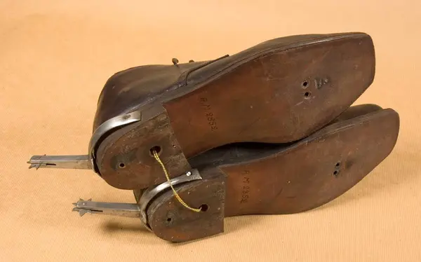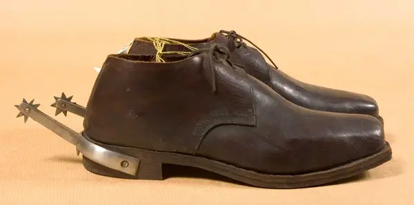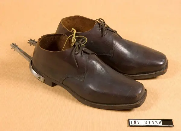 Skorna med sporrar köptes in 1908 för att komplettera uniformen och var då sannolikt nytillverkade.