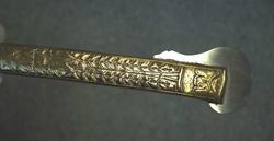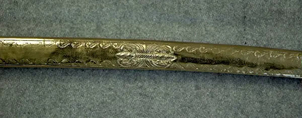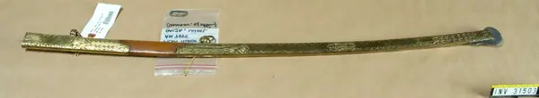 Sabeln uppgives vara m/1845, men orneringen synes närmare tyda på tidigare delen av Karl Johanstiden. jmf A.M. 7853 och 7886."Karl Johans modell, anlagd omkring 1820, i bruk till 1893 års modell för Kavalleriets officerare infördes."