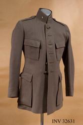 Ur uniform m/1923 för officer vid Livgardet till häst. Består av: vapenrock, ridbyxor, stövlar med sporrar, livrem med bärrem och sabel med portepé.