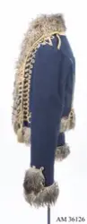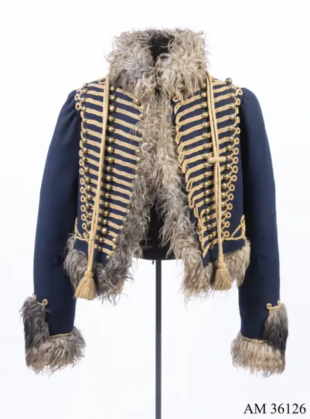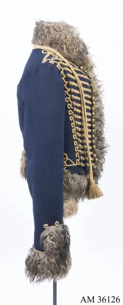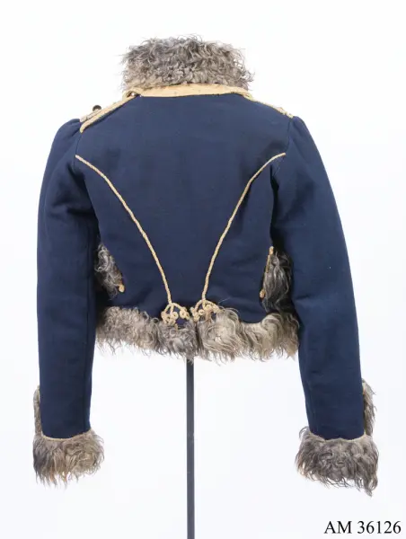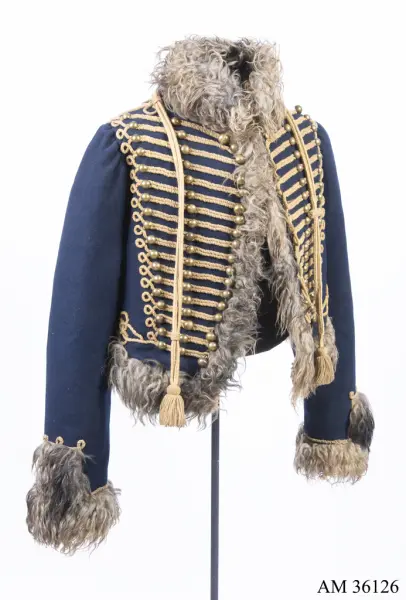 - Tidigare utställd som uniform för manskap vid Skånska husarregementet; 1816. Bestod då av av dolma, päls, byxor, mössa med plym och tillbehör, halsduk, handskar, skärp, stövlar med sporrar, kartusch med rem, sabelkoppel, sabeltaska med remmar och sabelhandrem.