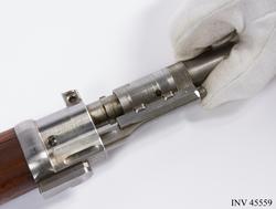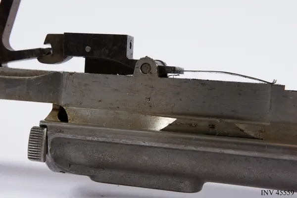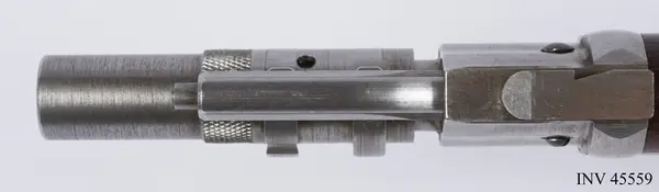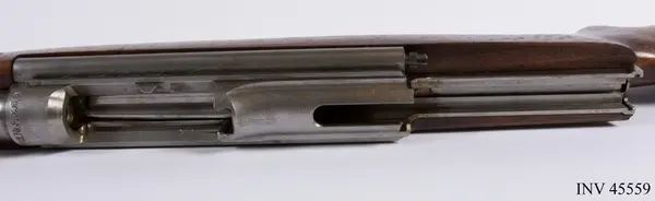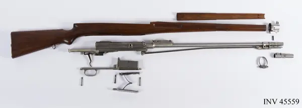 Geväret skänktes som gåva till Armémuseum 1937 av Emanuel A. Larsson. Han föddes i Bråneryd, Hakarp, söder om Huskvarna i Småland. Larsson studerade vid Chalmers i Göteborg och examinerades 1901. Redan något eller några år efter examineringen reste han till USA och arbetade som ingenjör vid The Pratt & Whitney Company (idag Pratt & Whitney Measurement Systems) i Hartford, Connecticut. Företaget utvecklade vapentillverkningsmaskiner och instrument för tillverkning av skördemaskiner. I samband med tjänstgöringen kunde han erhålla ett exemplar av detta sällsynta automatgevär. Det berättades att Larsson på fritiden ägnade sig mycket åt släktforskning och spårade svenska emigranter under sina resor i USA.