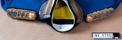 - Ur uniform för överste vid Fortifikationen. Bestående av vapenrock med epåletter och axelklaffar, paradskärp, långbyxor, uniformsmössa, hatt med plym, ägiljett och resårkängor. Buren av överste T G R Bergenstråhle.