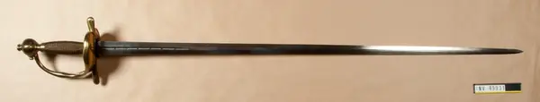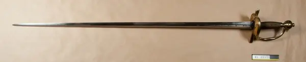 Vid fästet är fäst en papperslapp, på vilkens ena sida det står: "Modell från Wira bruk insändt, hwar af klingan förmenas vara gjord på 1720-talet" samt nedtill i högra kanten årtalet 1759. På andra sidan finns Krigskollegiums sigill i rött lack.