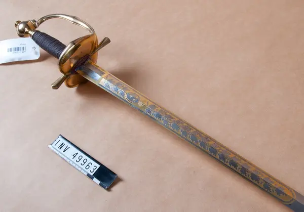 - Värjan är sannolikt en gåva från dåvarande Kronprins Frans Josef Oskar, senare konung Oskar I, eller också har den tillhört denne person. Liknande värjor bars även till salongsuniform av kavalleri- och artillieriofficerare, se AM 49987.