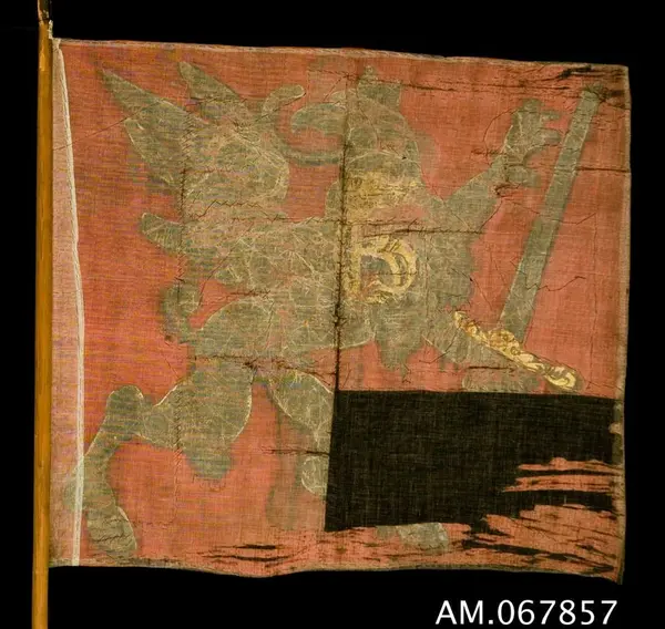 Det rör sig knappast om ett standar för Adelsfanan. Mot detta talar det enkla utförandet. Viktigt för proveniensbestämningen är om det finns rester av fransar och hur spikhålen i duken ser ut. Kan vara ett provinsbanér från Christinas kröning eller annat ceremoniellt sammanhang. Alternativt har duken varit större och ursprungligen en fana.