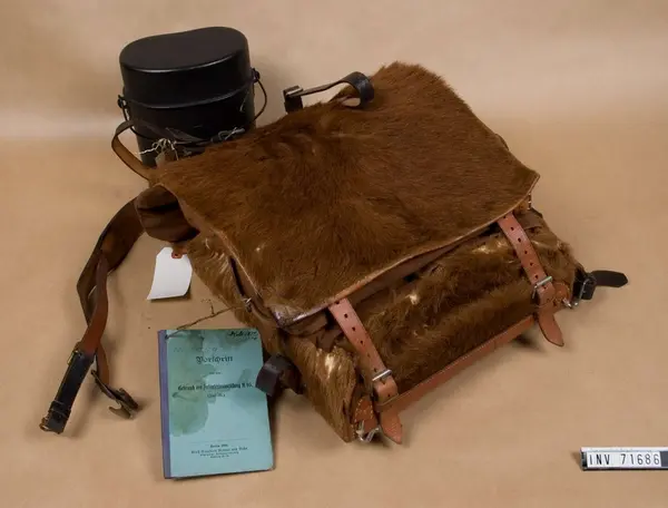 Den vidhängande boken beskriver hur utrustningen ska packas. Boken heter: "Vorschrift über den gebrauch der Infanteriausrüstung m/95 (inf. U.)". Tryckt 1899 i Berlin.