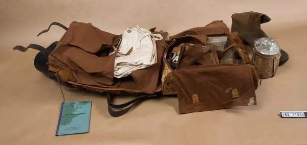 Innerhåller stövlar m/1884, långkalsonger m/1903, instrumentbok, tre delar till tältstång, tältpinnar, två matpåsar tre dosor för fett, en påse i kläde, ett kokkärl och en konserv.