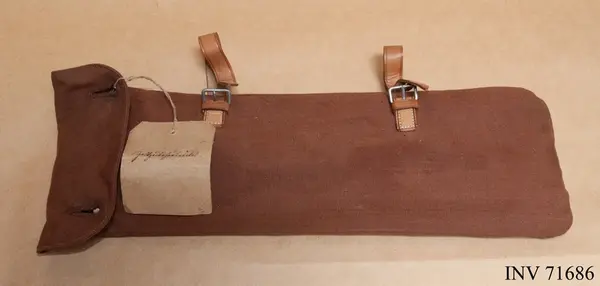 Fodralet till tältdelarna är av m/1896 och tältstångdelarna samt tältpinnarna m/1902. Kokkärlet är av m/1910.