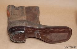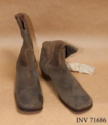 Stövlarna är märkta "3.G.R." på flera ställen och "1884". Sulorna är stämplade "29" och "9½". De är sydda med köttsidan utåt och sulorna är pliggade med träpligg samt försedda med klackjärn. På den ena stövelns hälla bak sitter en etikett med text: "Tyska stöflar bekommna år 1884".