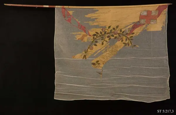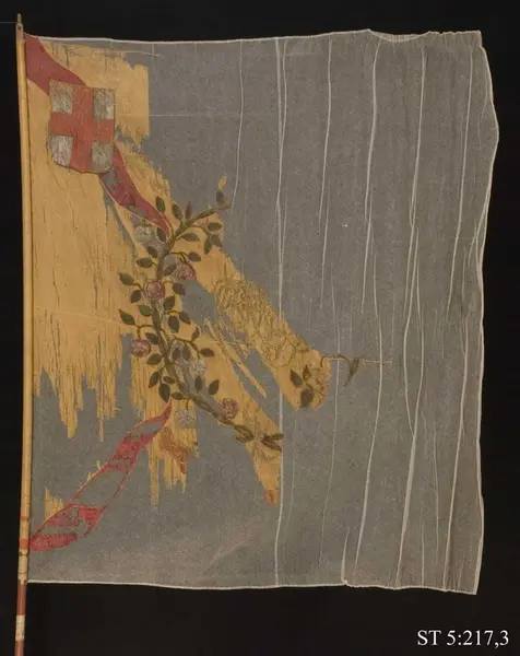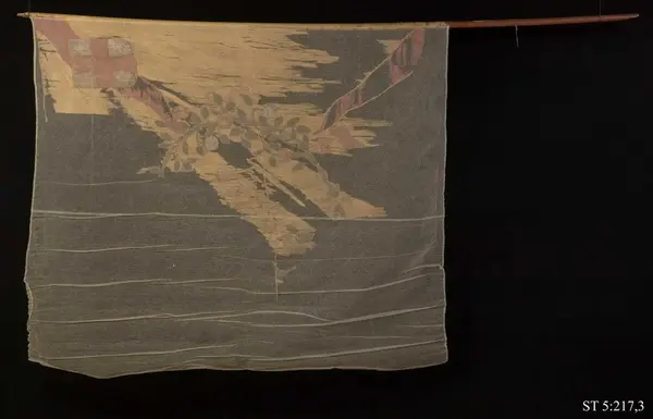 - Fanan är tillverkad för Maximilian Rosenkrantz' värvade regemente. Den är möjligen tagen i slaget vid Landskrona 14/7 1677.