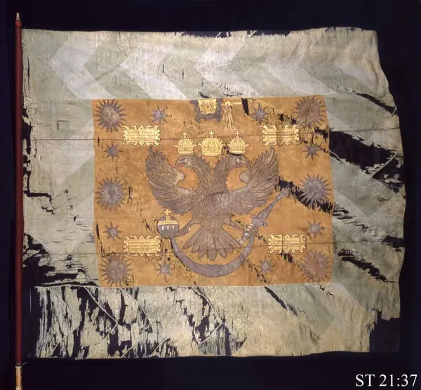Fanan har tillhört Pskovs första streltserregemente under befäl av överste Ivan Michailovitj Kokosjkin. Den togs i oktober 1700 vid Ismeen vid Peipussjön av överste Wolmar Anton von Schlippenbach.