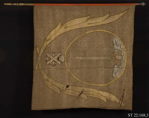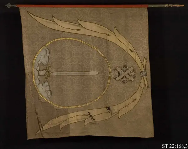 I samlingen finns 15 bruna fanor med gula palmkvistar möjligen är det dessa 7 som är upptagna i listorna över Narvabytet. Alternativt kan det vara de 8 med nr ST 22:167, 1-8