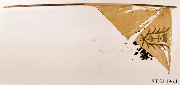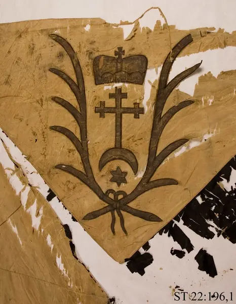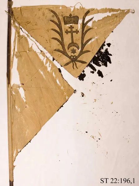 - Fanan togs som trofé av svenska trupper under slaget vid Jakobstadt (Jekabpils) i Kurland som stod den 26 juli 1704. Wisniowieckis trupper förlorade totalt 13 infanterifanor och sju standar till svenskarna.