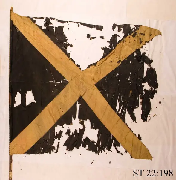 - Fanan togs som trofé av svenska trupper under slaget vid Jakobstadt (Jekabpils) i Kurland som stod den 26 juli 1704. Wisniowieckis trupper förlorade totalt 13 infanterifanor och sju standar till svenskarna.