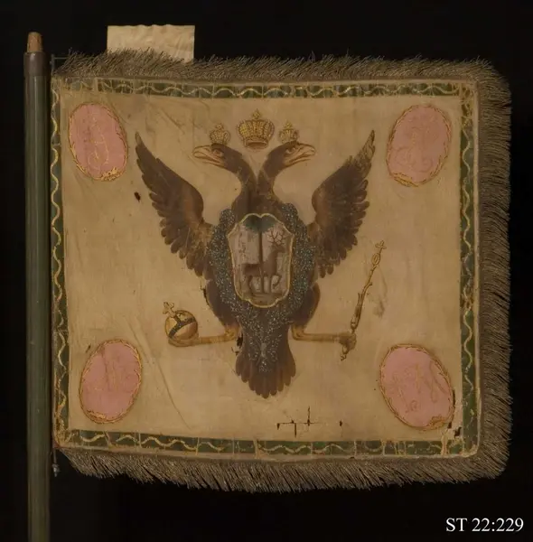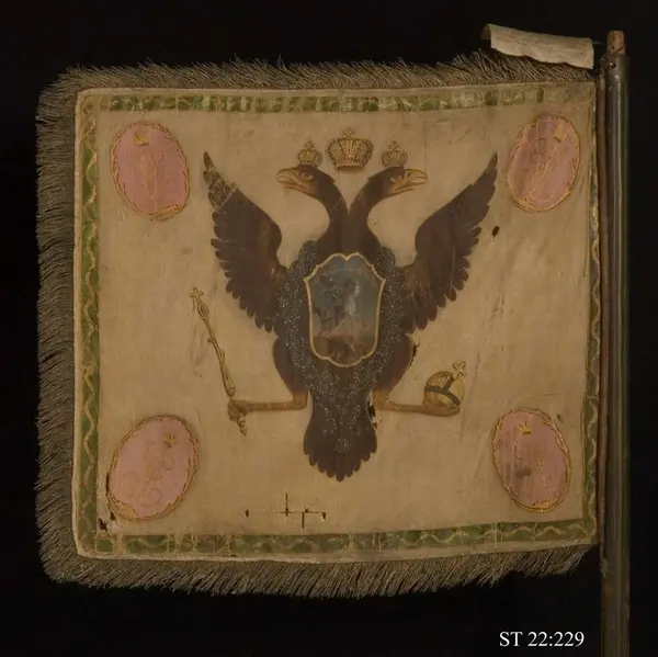 - Standaret tillhör fjärde musketörskompaniet vid Elets infanteriregemente. Taget vid Svensksund 9/7 1790.
