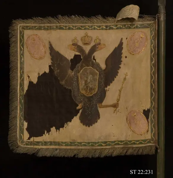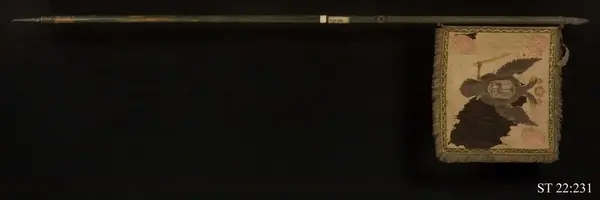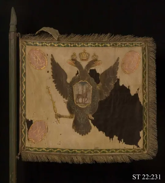 - Standaret tillhör ett musketörskompani vid Elets infanteriregemente. Taget vid Svensksund 9/7 1790.