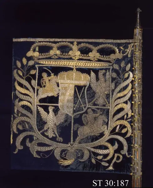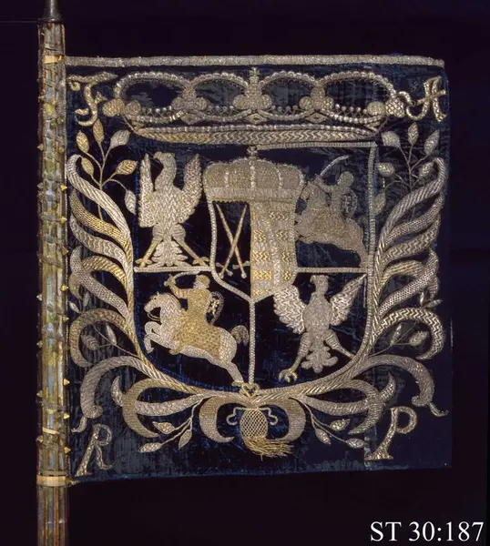 Standaret har tillhört Michał Serwacy Wiśniowieckis polska kavalleri. Det är möjligen tillverkat 1702 då Wiśniowiecki utnämndes till fälthetman av Kung August II, och erövrat 26/7 1704 vid Jakobstadt (Jēkabpils) i Lettland.