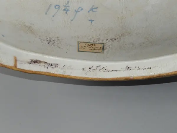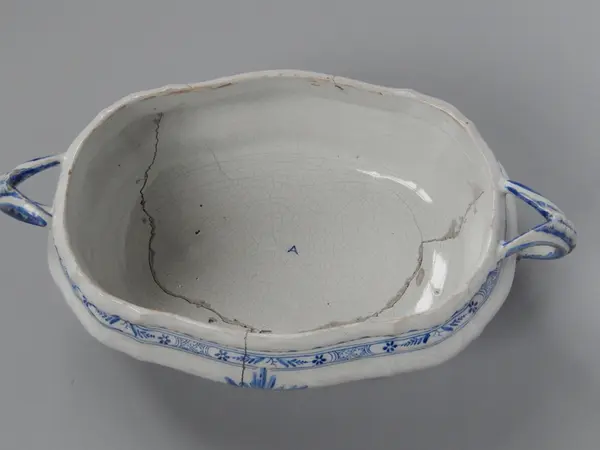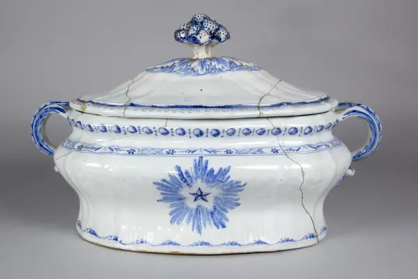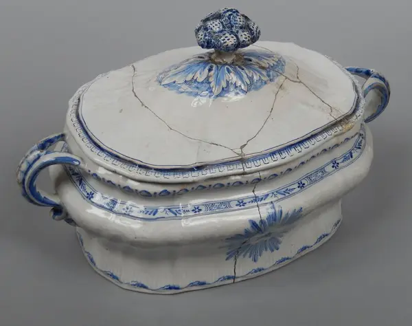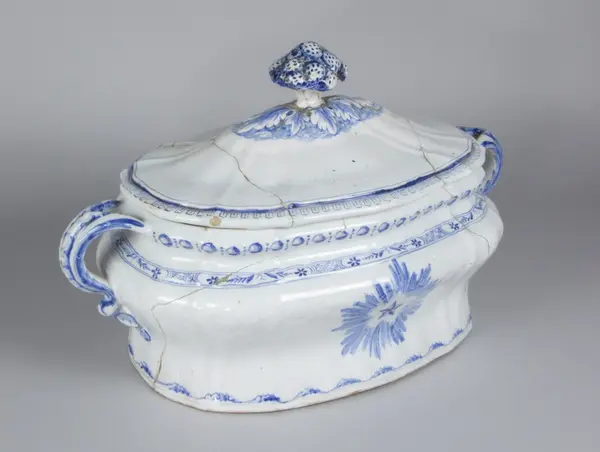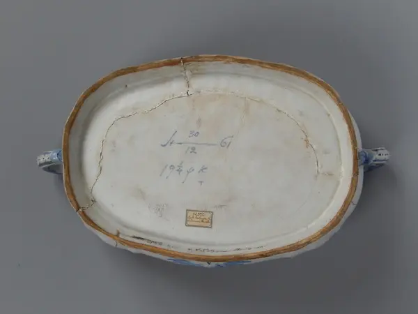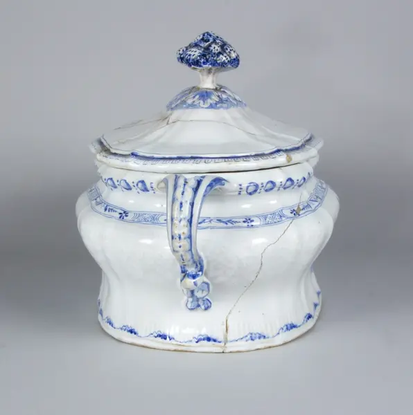 - Terrin, tillverkad vid Rörstrands porslinsfabrik 30/12 1761. Mönstret formgivet av Christian Precht. Såld till museet 12/11 1886 av J F Törnros, Stockholm