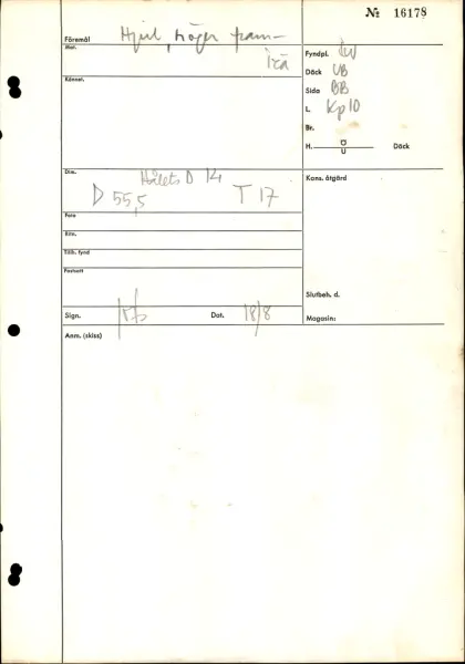 Tillhör lavetten som påträffades vid kanonport 10. Lavettbotten 16173 utgör huvudnummer för lavetten.