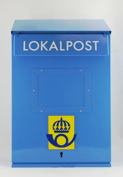 För lokalbrev. Lokalbrevlådor sattes på försök upp i Stockholm 1988. Dessa lådor hade på iläggsklaffen texten: Lokalbrev.