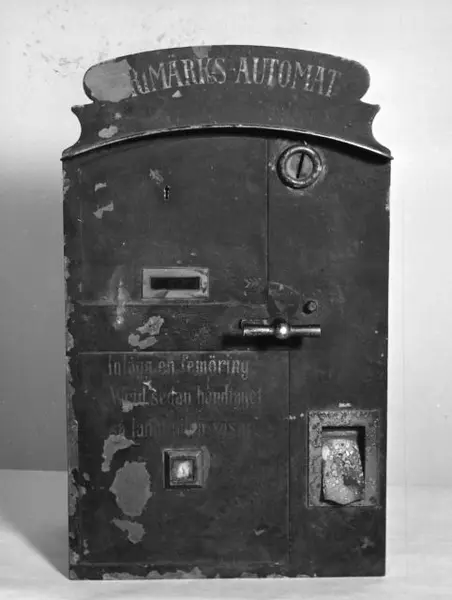 - Frimärksautomat av Nybergs patent, införd i Postverket 1910.