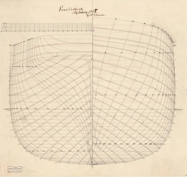 HistoryERNST MERCK byggdes på Nyköpings Mekaniska Verkstad 1858, konstruerad av G W Svenson. Bygget initierades av redaren Johan Holm, men finansierades av den österrikiska bankiren Ernst Merck. Hon var byggd av stål och hade såväl vattentäta skott som dubbel botten. Till hjälp vid lastning och lossning var hon utrustad med en lokomobil (en hjulförsedd ångmaskin) som gick på räls på fartygsdäcket. Fartyget, som var Nordens största ångfartyg och det största "järnångskepp” som dittills byggts i Sverige, fick namnet ERNST MERCK, men kallades allmänt "den svenska Leviathan” - Great Eastern, Englands Leviathan byggdes i dessa dagar. På en resa med en last av järnvägsvagnar till Rio, blev hon det första svenska ångfartyget som korsat ekvatorn.